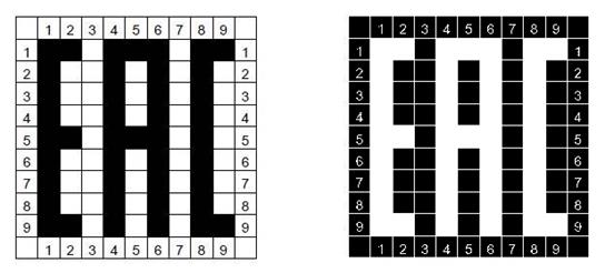 2、标示由三个字母“E”“A”“C”组成,三个字母的长度和宽度是相同的,字母组合的标示尺寸也是相同的(如下);